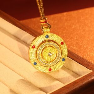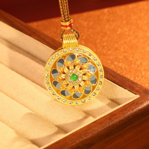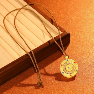 2025 新中国風ゴールドショップダイヤモンド象嵌回転式八宝コンパスペンダントネックレス女性のレトロなエスニックスタイルの個性