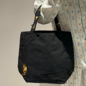 Yキャンバスバッグ手提げショルダーバッグ黒刺繍シンプルins帆布バッグファスナー