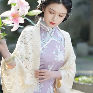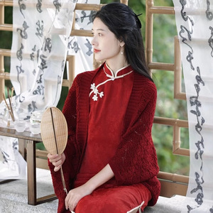秋と冬のニットカーディガンとスカート、女性用の気質チャイナドレスショール、2025年の新しい暖かくファッショナブルなジャケット