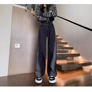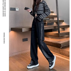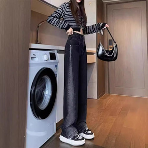 2025 新しいハイウエスト小柄な女性のための春、夏、秋のアメリカンストレートパンツ女性のための黒とグレーのストレートジーンズ