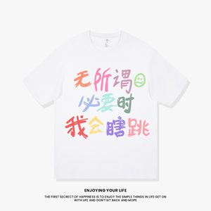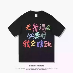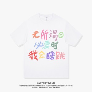 【目を閉じて踊ってもいい】テキスト半袖Tシャツ、ゆったりと万能な純綿の夏用Tシャツ、男女兼用、トレンド