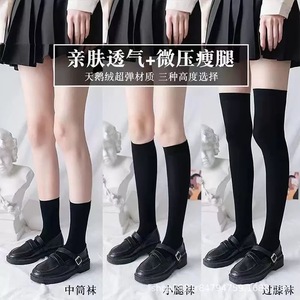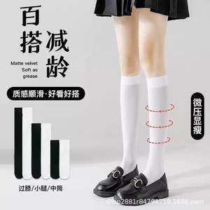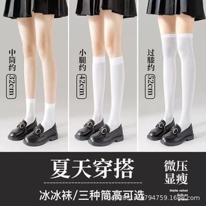 jkカーフソックス 夏用薄手ストッキング 透明カーフソックス レディース 通気性抜群 万能ミモレソックス 黒ストッキング 着痩せ効果 膝上ソックス