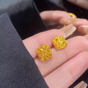 新しいサンドゴールドジュエリーつや消し小さな角砂糖イヤリングライト高級ハイエンド小さな角砂糖リングネックレスジュエリーセット