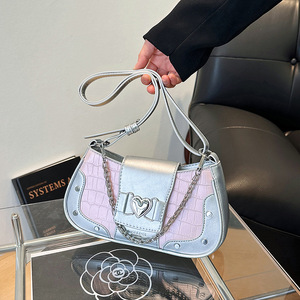 フレンチスタイルの個性的で甘くてクールな脇の下バッグ、2025年新作ストーン柄スクエアバッグ、おしゃれで高級感のあるレディースショルダーバッグ