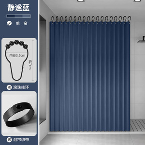 静かなブルー - 両面磁気増粘: (シングルカーテン + フック + ストラップ)