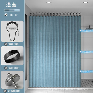 タイニーブルーの厚手の生地: (シングルカーテン + フック + ストラップ)