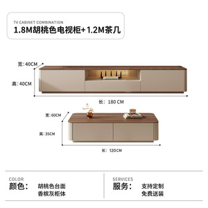 1.8M ウォールナットテレビキャビネット + 1.2M コーヒーテーブル