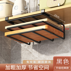 源工場は穴を開けないで台所の物置棚の下でまな板を掛けます。