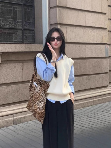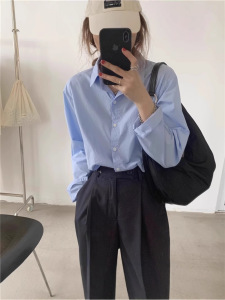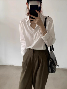 白い純綿の長袖のシャツの女性2025春の新型の韓国版はゆったりしています。