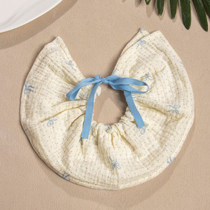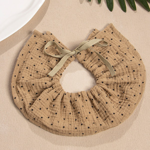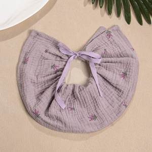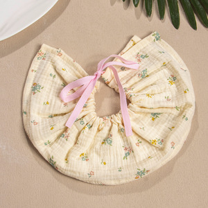 クロスボーダー純綿二重クレープレースよだれタオル四重ガーゼプリント赤ちゃんハスの葉の縁の調節よだれかけ