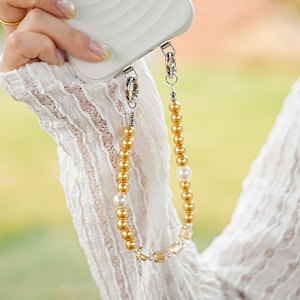 人気のオリジナルダブルボタン携帯電話チェーンペンダント絶妙なビーズ携帯電話ケースチェーンかわいいスタイルリストストラップ卸売