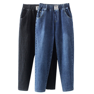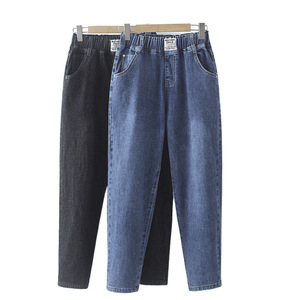 女式牛仔裤哈伦女松紧高腰春秋2023弹力妈妈裤宽松大码中老年女裤