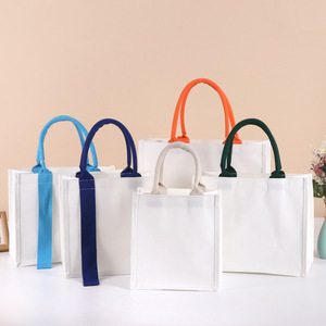スポットブランク漂白漆塗りリボンスタイルリネントートバッグ女性の大容量ハンドバッグ DIY 手描きキャンバスバッグ