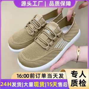 古い北京の布の靴の女性の春の新型の飛織のレジャーの運動靴の軽やかな靴の散歩の靴の中で老年の健歩の靴