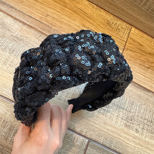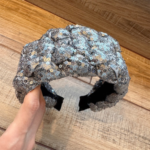 B312ワイドスパンコール編み髪カチューシャ気品目立つ顔小百合重工高頭トップカチューシャ髪飾り