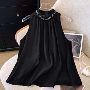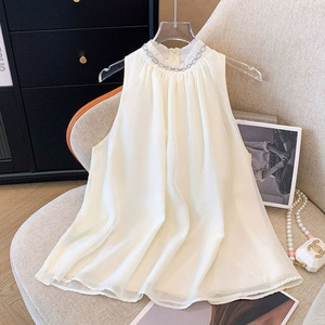 デザインヘビーデューティフレンチシフォンシャツトップノースリーブレディース2025夏新作ホルターネック人気通勤シャツ
