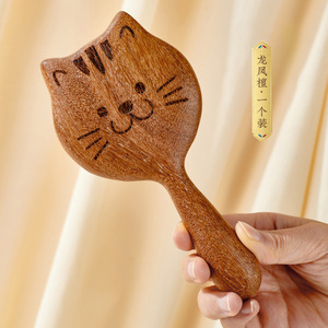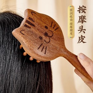 家庭用携帯頭部粗歯経絡櫛女性多機能頭治療櫛金糸檀木櫛かわいい猫マッサージ櫛