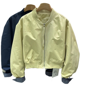 上衣小个子2025女外套立领春季夹克宽松拼接挽袖格子韩版短款新款