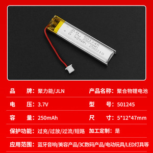 501245ポリマーリチウム電池3.7V 250mAh電動歯ブラシbluetoothイヤホン充電倉庫長尺電池