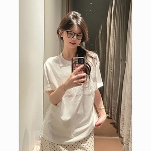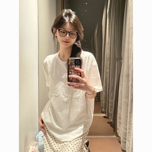 799 # 実質オリジナル蝶刺繍(ピュアコットン200gコーマタイトサイロ)レディース半袖Tシャツ