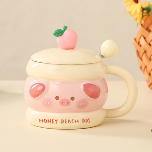 カップルマグかわいいセラミックカップ蓋付きスプーンガーリーハート漫画ウォーターカップ家庭用ミルク朝食カップ卸売