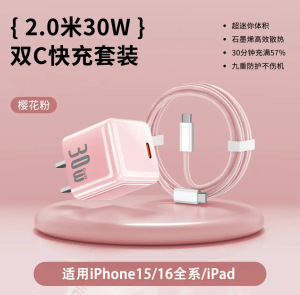 ミニカラー 30W 小型アイスキューブ 低温で機械を傷つけない 急速充電 充電ヘッド デュアル Type-c 編組ケーブル 充電セット