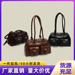 レトロクロスボディボストンバッグ女性のための 2025 秋の新大容量通勤ハンドバッグシングルショルダー脇の下バッグ