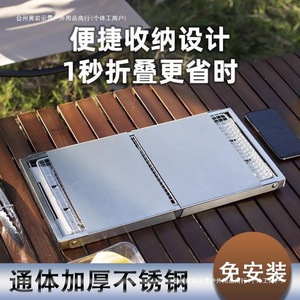 超厚ステンレス折り畳みオーブン家庭用無煙屋外携帯焼肉串焼き木炭棚は電気泳動を示している