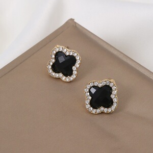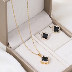 人気の黒の四つ葉のクローバー鎖骨チェーンイヤリング卸売ライブブロードキャストホットスタイルステンレス鋼ネックレス非退色