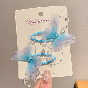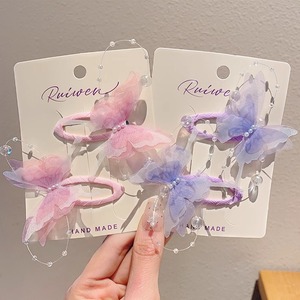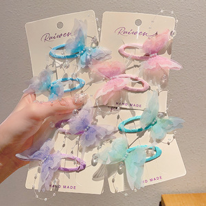 子供の超仙真珠の蝶のヘアピンの女の子のサイドのヘアピンの髪飾りは女性の赤ちゃんの額の王女の髪飾りを傷つけません。
