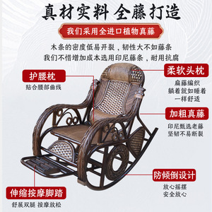 天然本籐ロッキングチェアリクライニングチェア大人用バルコニーホームレジャー高齢者昼寝椅子籐織籐椅子レジャーチェアホーム