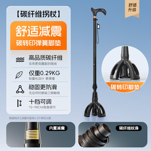 高齢者用カーボンファイバー歩行杖、医療用滑り止め四本足安定杖、超軽量衝撃吸収、軽量伸縮歩行器