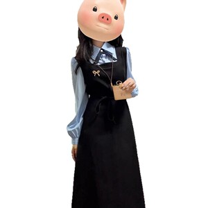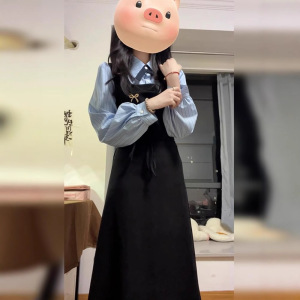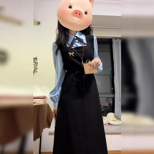 假两件学院风长袖连衣裙子女秋冬季2025新款教资面试韩系穿搭套装