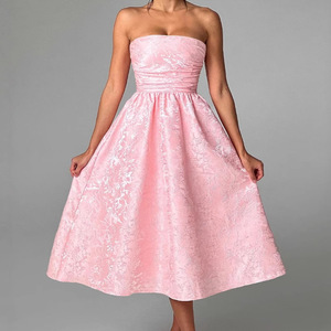 新しい在庫 2025 ヨーロッパとアメリカンスタイルのソリッドカラーの花びらパターンチューブトップウエストスカートパーティーライト高級ドレス