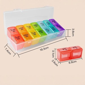 7日間14コンパートメントピルボックス、ポータブル防湿ピルボックス、ヘルスケア製品の分類、保管、プラスチックボックスの品質保証