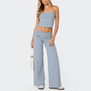 アマゾンヨーロッパとアメリカの人気の国境を越えた女性のニッチスタイルのチューブトップへそ出しストライプワイドレッグカジュアル夏の新しいスーツ