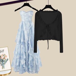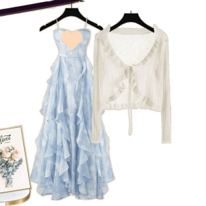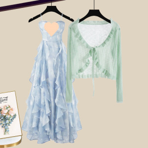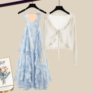 夏季穿搭一整套晒冰丝针织开衫配气质显瘦法式吊带连衣裙两件套