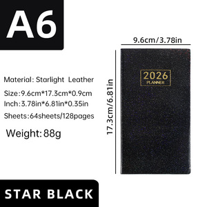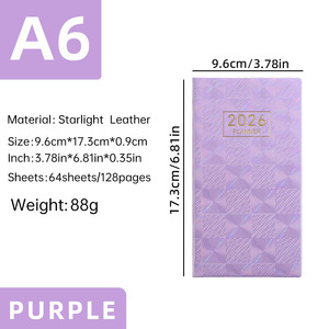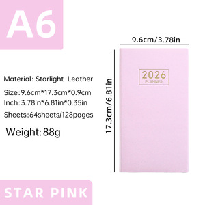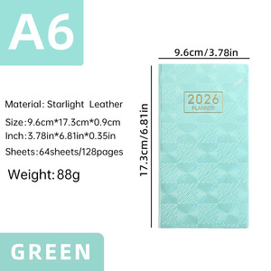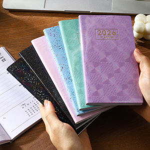 2026年A6レーザー英語プランナー ミニポケットサイズ レザー表紙 薄型週間カレンダー スケジュール帳 2026年新モデル