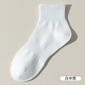 中筒袜子男春秋纯色棉袜 运动百搭男士白色长筒袜 诸暨篮球袜女袜