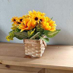 造花装飾植木鉢模擬植物鉢植えフラワーバスケットひまわりバラユーカリアジサイ植木鉢