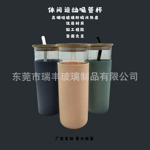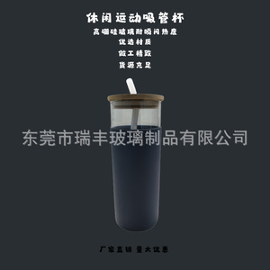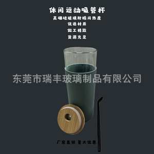日本の女の子の竹蓋ストローガラス耐熱高ホウケイ酸クロスボーダー印刷可能な豆乳ジュースミルクティーカップウォーターカップ