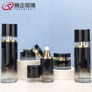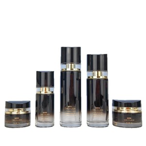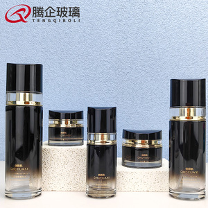 新しいグラデーションブラックオーバルガラスセットボトルプレス人気のトナースプレーローション空ボトルクリーム詰め替えボトル