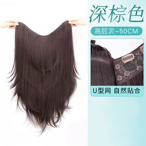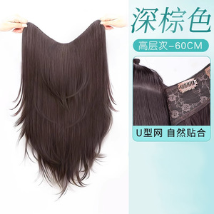 ワンピースのウィッグ、V字型の高レベルの微カール人工毛、自然なふわふわの増毛、痕跡のないヘアエクステンション