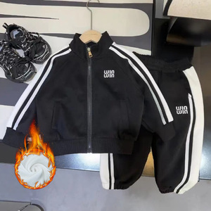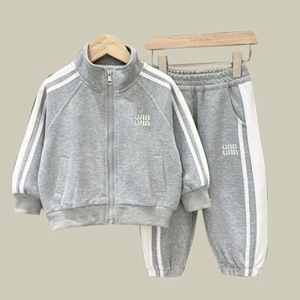 跨境童装秋季新款男童女童两件套中大童运动套装潮酷风长袖两件套