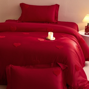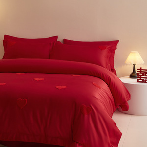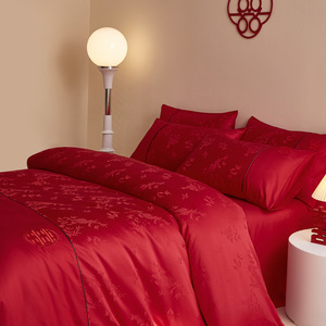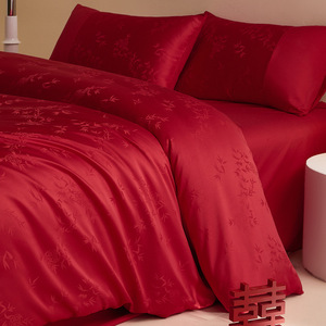中国の愛の結婚式 4 点セット大きな赤いベッドシーツキルトカバー純綿高級結婚式寝具結婚式の部屋のキルト