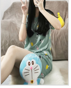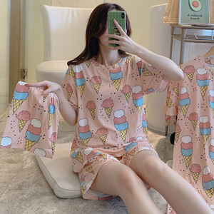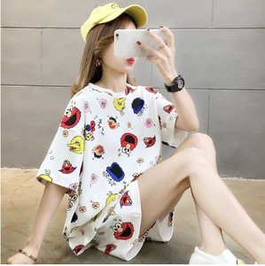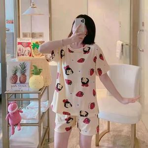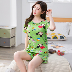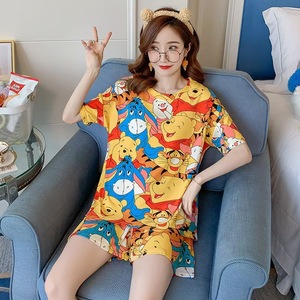 女性用夏の半袖パジャマ、キュートで甘い漫画の半袖プラスサイズのレディースレターガールホームウェア薄手のスーツ