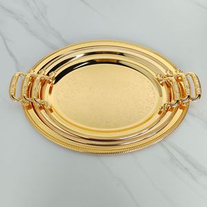 楕円形の金メッキのフルーツプレート、シンプルなリビングルームのスナックプレート、商業ホテルのサービングプレート、ウェディングケーキプレート