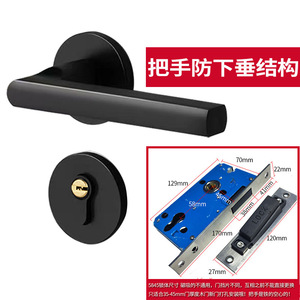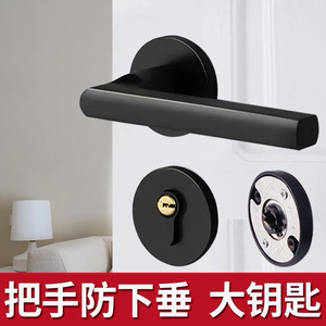 [たるみ防止] ブラック磁気ルームベッドルームドアロックサイレント分割木製ドアロック鉄ハンドル新しいドア用