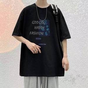 重磅纯棉短袖T恤男夏季港风情侣半袖印花体恤宽松打底衫潮流舒适