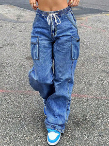 ジーパンの女性のファッションのオーバーオールの女性のデニムの長ズボンのアメリカの街頭のファッションのゆったりしているストレートなズボン